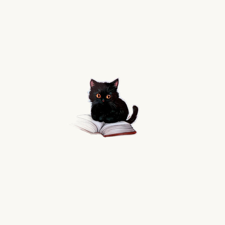 Meet your new familiar. This cozy black cat on a book sticker is perfect for readers, witchy souls, and anyone whose reading nook could use a little magic.
